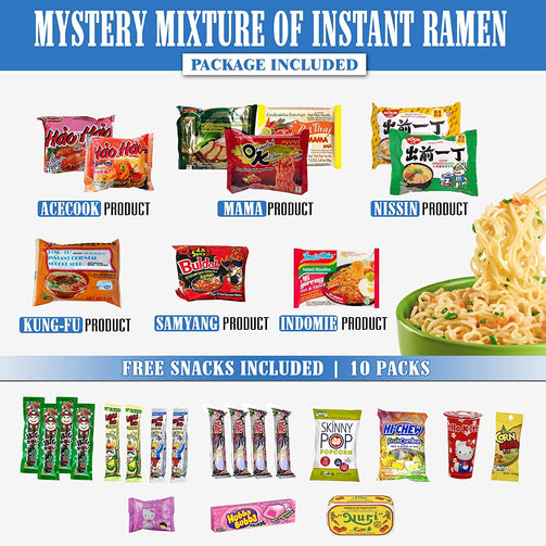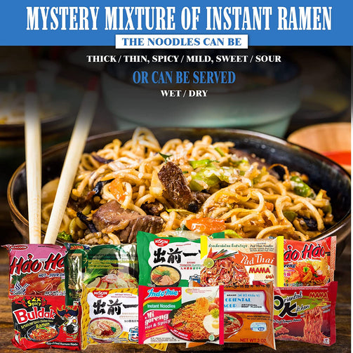 The Mystery Instant Ramen BUndle10 Packs Includes : Samyang, Nong-shin, Nissin, Red Chef and Mama. This variety noodle will be mix & match of all the popular ramen flavors in the world!